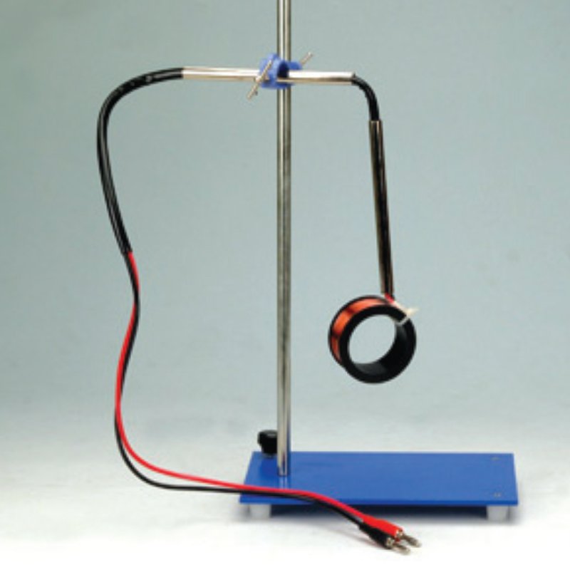 Elle est suspendue par un fil coaxial de 45 cm de long, sortant d’un tube métallique équipé d’une prise pour les connexions. Il permet sa fixation par une noix double sur un support de physique