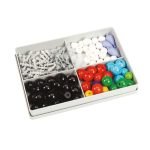 Ensemble de boules prépercées, en matière plastique, colorées dans la masse, de 50 mm de diamètre. Livré avec des raccords compacts. Le montage à réaliser par vous-même est sans difficulté particulière. Collection comprenant deux réseaux du système cubique et un réseau hexagonal (solide primitif composé de prismes centrés) :
